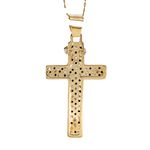 Este elegante dije crucifijo de dos tonos en oro de 18K es el complemento perfecto para tu colección de joyas. Su diseño único y detallado lo hace ideal para lucirlo en cualquier ocasión especial.