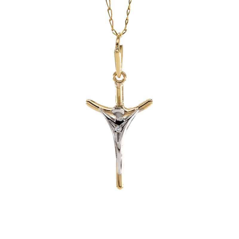 DIJE CRUCIFIJO 2 TONOS CON ZIRCON 18K