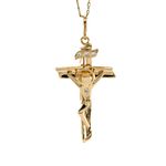 Este impresionante dije crucifijo de 18K es una pieza única y elegante que añadirá un toque de sofisticación a cualquier atuendo. Los zircones brillantes a lo largo del crucifijo hacen que esta joya sea verdaderamente deslumbrante y perfecta para cualquier ocasión especial.