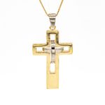 Este elegante dije en forma de cruz de oro 18K es el complemento perfecto para cualquier ocasión. Su diseño clásico y atemporal lo convierte en una pieza imprescindible en tu colección de joyería.