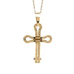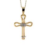 Maravilloso dije cruz de dos tonos en oro de 18K, una pieza delicada y elegante que complementará perfectamente cualquier estilo. Ideal para lucir en cualquier ocasión.