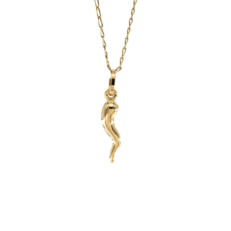 Este elegante dije en oro de 18k es la pieza perfecta para realzar cualquier look. Su diseño de cuerno simboliza fuerza y protección, haciéndolo ideal para regalar a alguien especial.