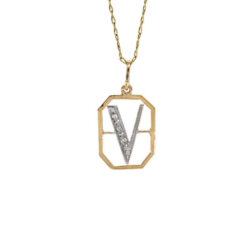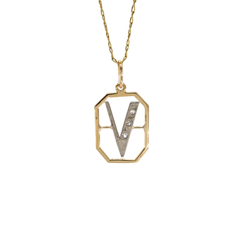 DIJE LETRA V CON ZIRCONES 18K