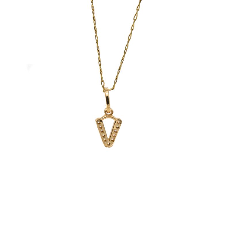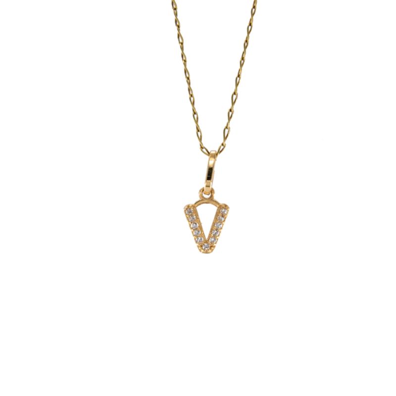 Descubre la elegancia y el brillo de nuestro dije letra V con zircones en oro de 18 quilates. Perfecto para combinar con cualquier outfit y lucir un estilo único y personalizado. Hazte con esta joya exclusiva y resalta tu esencia con un toque de lujo.