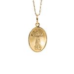 Este hermoso dije ovalado de oro de 18K con la imagen de la Virgen es el complemento perfecto para añadir un toque de elegancia y espiritualidad a tu look. El diseño clásico y sofisticado lo convierte en una pieza atemporal que nunca pasará de moda.