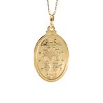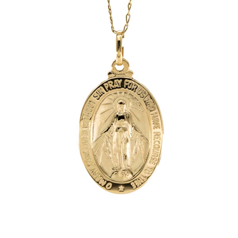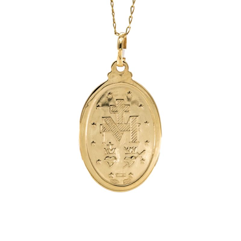 Dale un toque celestial a tu look con este hermoso dije ovalado de 18K. Con la imagen de la Virgen María grabada, este accesorio es perfecto para elevar cualquier outfit.