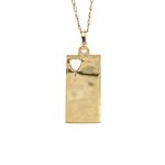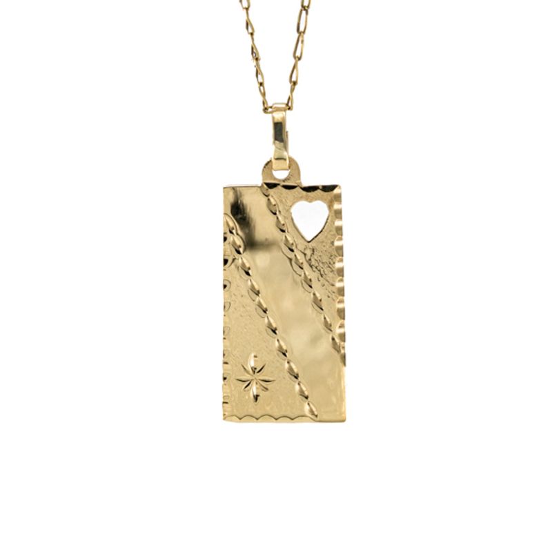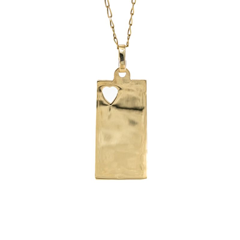 Eleva tu estilo con este elegante dije de placa diamantada en oro 18K. Un accesorio atemporal que le dará un toque de lujo a cualquier conjunto.