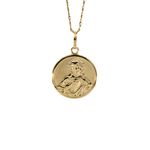 Luce elegante y sofisticada con este hermoso dije redondo religioso de 18K. La combinación perfecta entre estilo y fe, ideal para llevar contigo en todo momento.