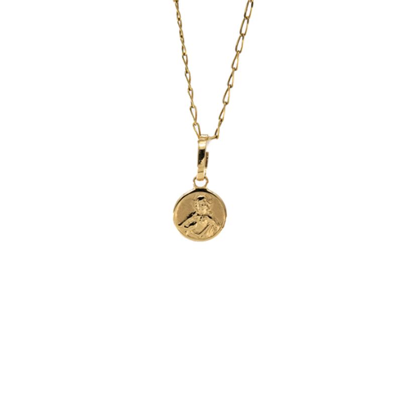 Este hermoso dije redondo religioso está elaborado en oro de 18 quilates, un accesorio elegante y significativo que lucirá espectacular en cualquier ocasión especial. Sorprende a tus seres queridos con un regalo único y de alta calidad.