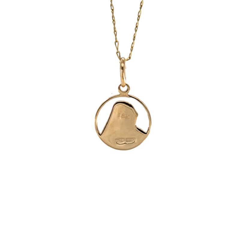Descubre la elegancia y sofisticación del Dije Redondo Virgen en oro de 18K. Una pieza única y exclusiva que realzará tu estilo con su diseño detallado y acabado de alta calidad. Perfecto para regalar o para lucir en ocasiones especiales. ¡Hazte con el tuyo hoy!