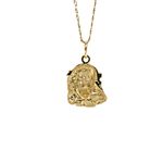 Este impresionante dije de oro de 18K con el rostro de Cristo es el complemento perfecto para cualquier ocasión especial. Con detalles intrincados y elegantes, esta pieza única seguramente será el centro de atención.