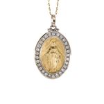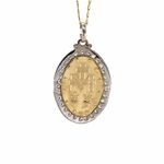 Este hermoso dije de Virgen con zircones en dos tonos es el complemento perfecto para resaltar tu estilo elegante y sofisticado. Fabricado con oro de 18K, esta pieza única seguro capturará todas las miradas.
