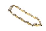 Eleva tu estilo con esta elegante pulsera de dos tonos 18K. El contraste perfecto entre el oro blanco y amarillo te hará destacar en cualquier ocasión. Ligera, cómoda y sutilmente llamativa, esta pulsera es el complemento ideal para tu outfit diario o para lucir en eventos especiales.