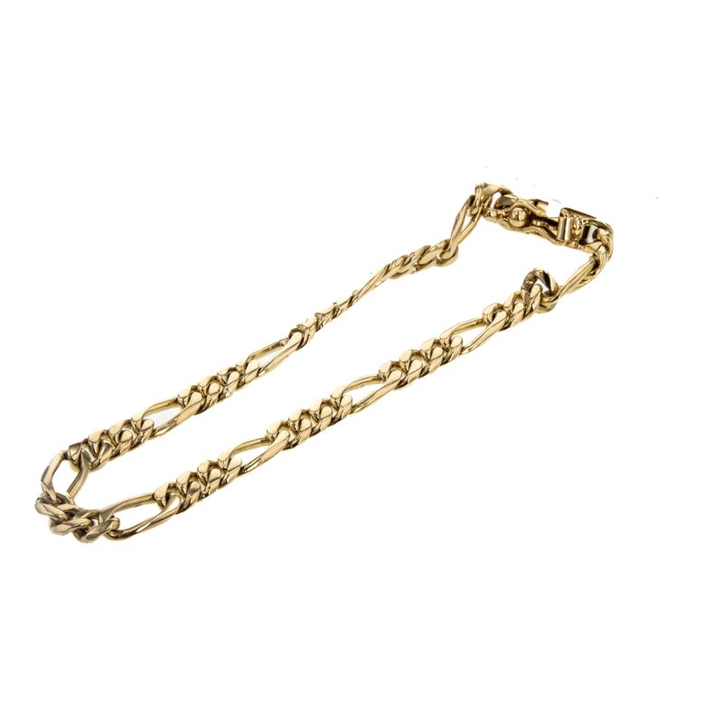 Disfruta de la elegancia y el lujo con esta impresionante pulsera de oro de 18K. Con un diseño único de 3x1, esta pieza es perfecta para complementar cualquier outfit y destacar tu estilo sofisticado.
